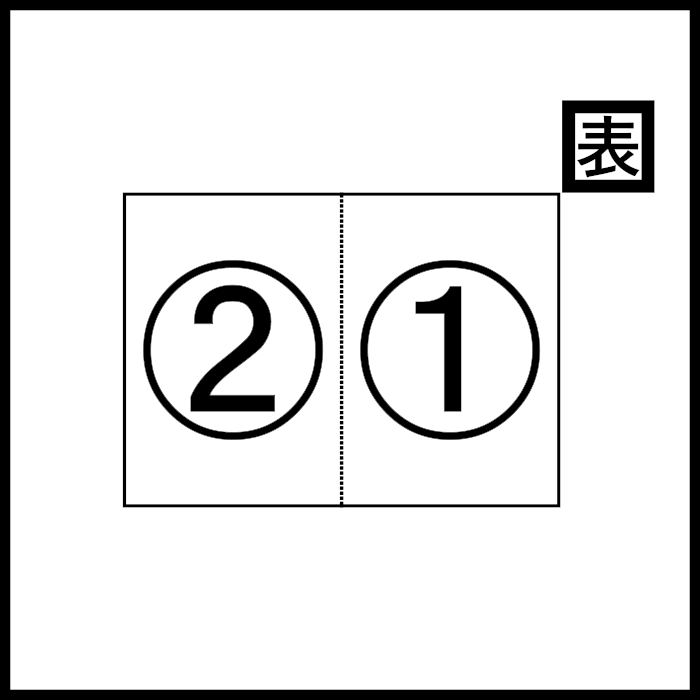 ![]() | 平綴じ | 片面2ページ割り付け(両面4ページ割り付け) | コピー本向け |